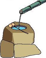 まず柄杓を右手に持ち、左手を清める。